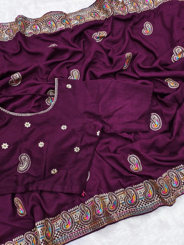 Sari Fabric: Premium Vichitra Silk With Heavy Embroidery Threads & Zari Work