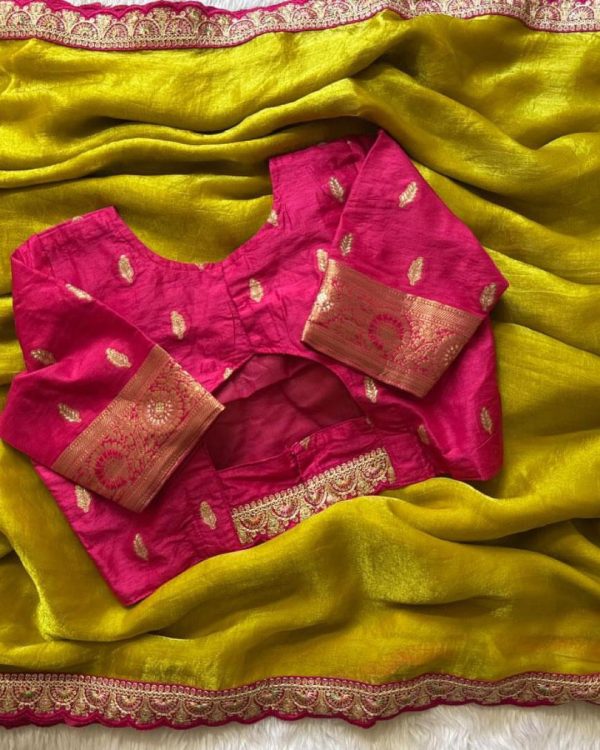 Blouse:- Dola silk- pairs with contrast running *(Unstitched blouse)*