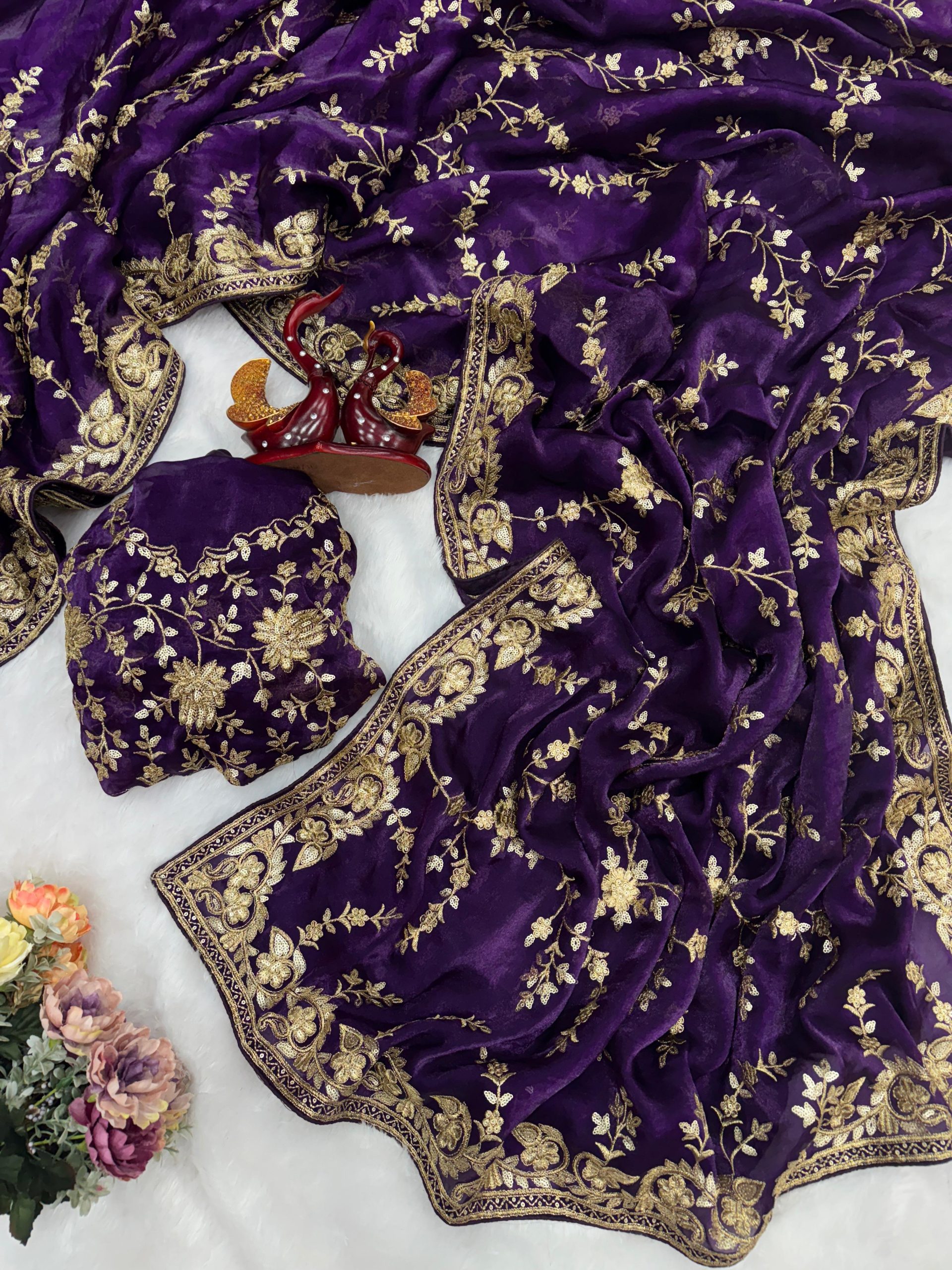 * BLOUSE*- Sequins and Zari embroidery work in space silk (UNSTITCH)