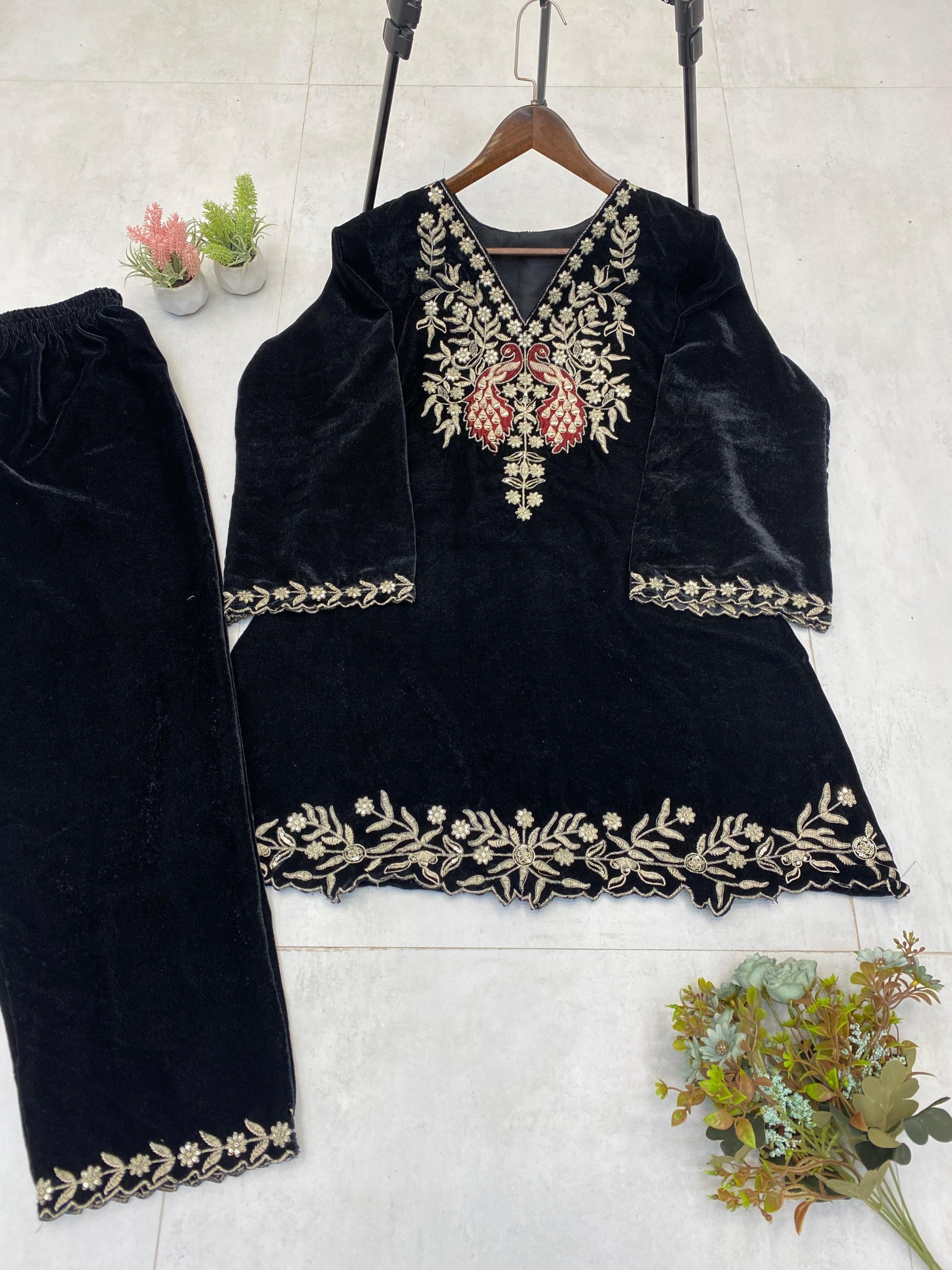 *TOP:* -FABRIC : VELVET -SEQUENCE EMBROIDERY WORK -INNER : MICRO -HEIGHT : 34”inch *SIZE : M (38)TO XXL(44)*