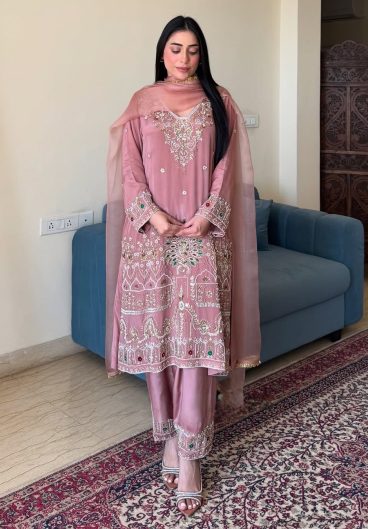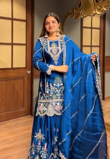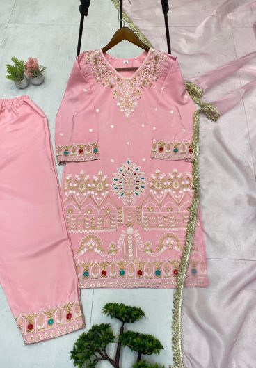 Ready to wear Chinon Silk with Embroidery Sequence Work Salwar Kameez