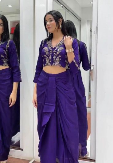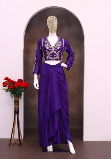 Soft Chinon silk with Embroidery sequins Cording work western Two piece set