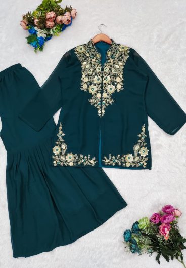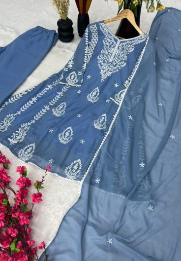 Soft Georgette with Multi-Thread Embroidery & Sequence work top bottom set