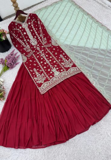 New Designer Party Wear Look Top-Plazzo and Dupatta With Heavy Embroidery Work