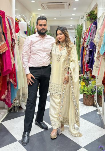 EXCLUSIVE 3 PIECE PLAZZO PAIR WITH DUPATTA IN EMBROIDERY AND REAL MIRROR WORK