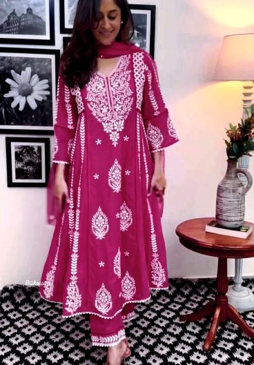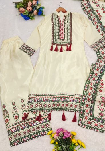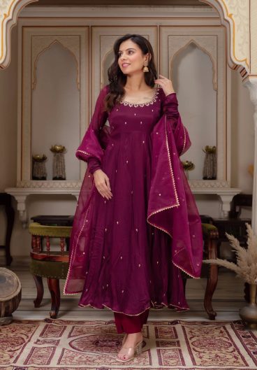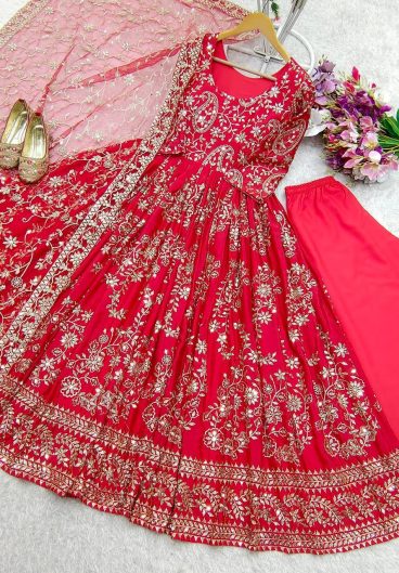 New Beautiful Heavy Chinon Silk Gown Pent Dupatta Set Fully Stitched Ready To Wear