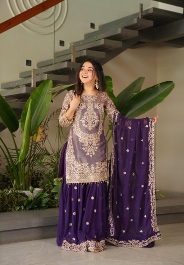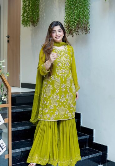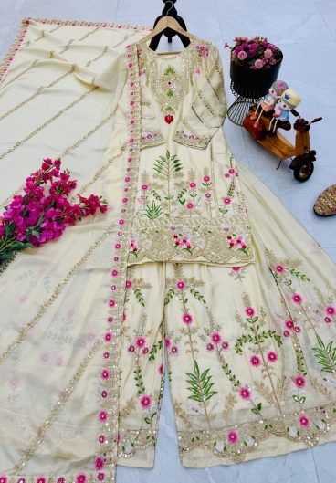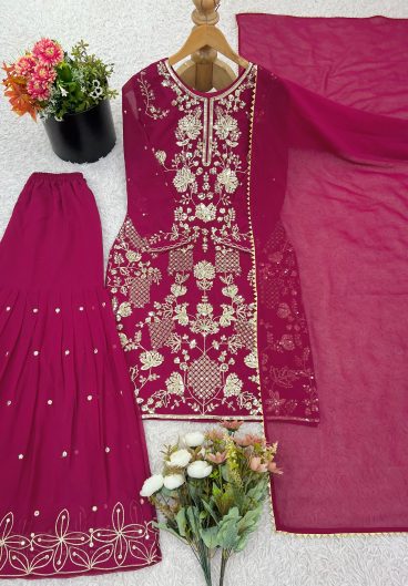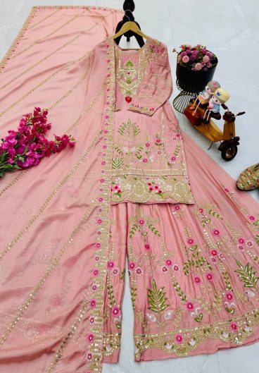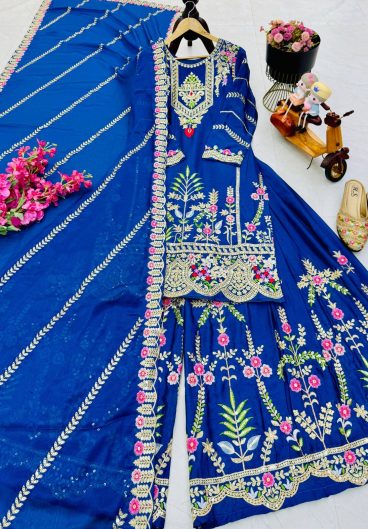 EXCLUSIVE 3 PIECE PLAZZO PAIR WITH DUPATTA IN SEQUENCE EMBROIDERY WORK