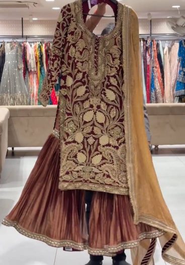 Crazy Silk Heavy Coding Embroidery Sequence Work Stitched Salwar Kameez