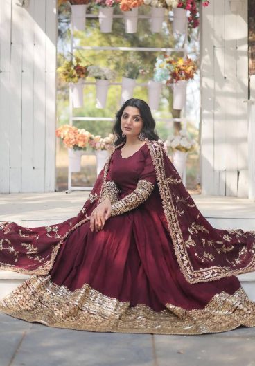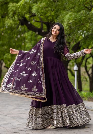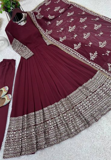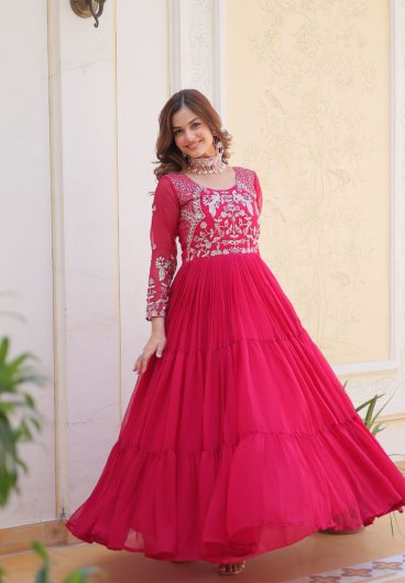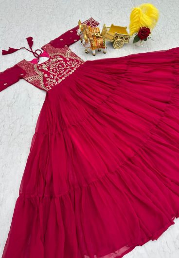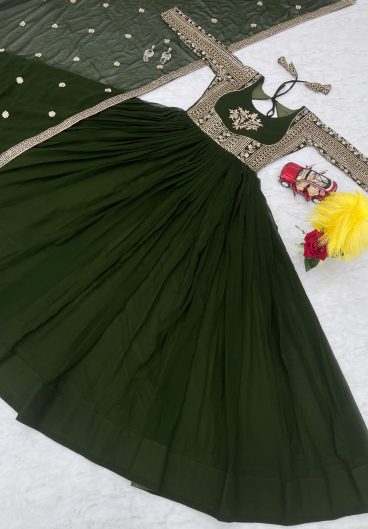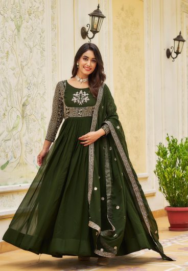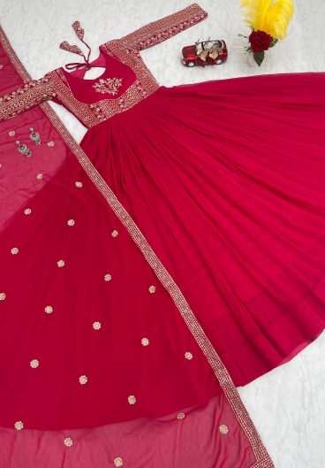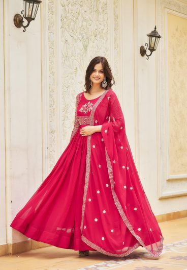Fox Georgette with Heavy sequence Embroidery Work Gown Dupatta Set