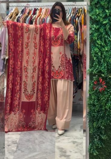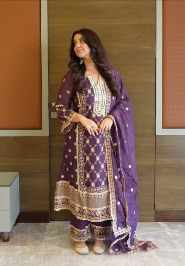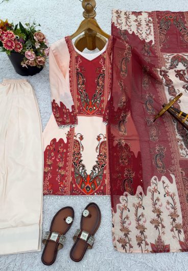New Designer French Crep Silk Top-Bottom And Dupatta Set