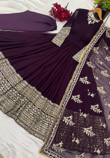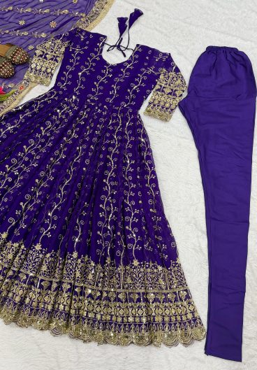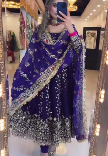 Heavy Pure Chinnon With Embroidery Sequence Work Fully Stitched Salwar Kameez