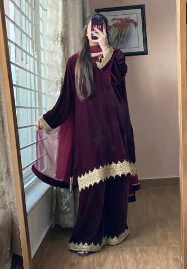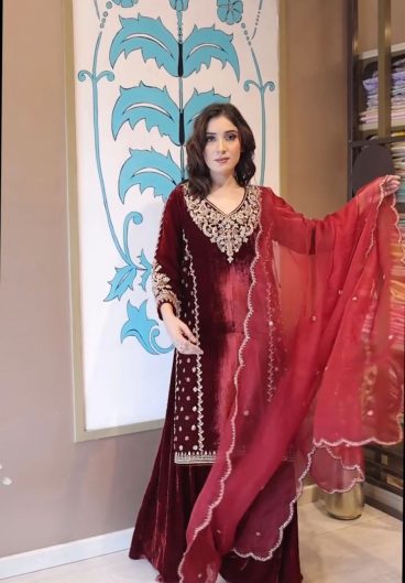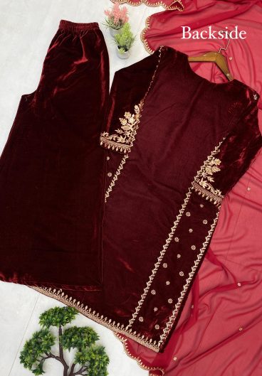 New Design Velvet Top Pent & dupatta Reddy To Wear Look