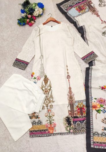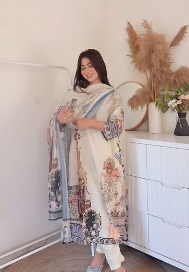 Festive & Party Wear Heavy Muslim Cotton With Heavy Digital Print With Top-Bottom And Dupatta Set