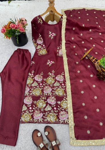 New Designer GMY SILK With Heavy Embroidery Coding 3mm Sequence Work Top Bottom And Dupatta Set
