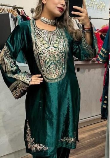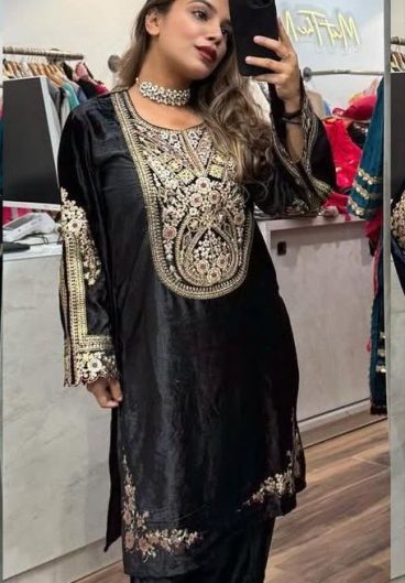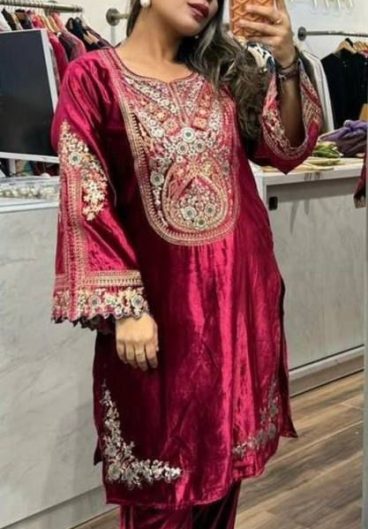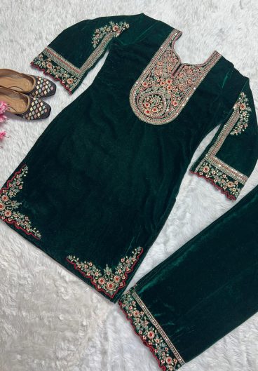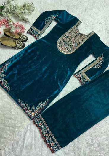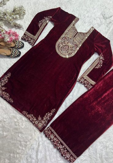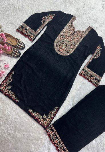 Pure Heavy Viscous Velvet With Heavy Embroidery Coding Sequence Work Top Pent Set