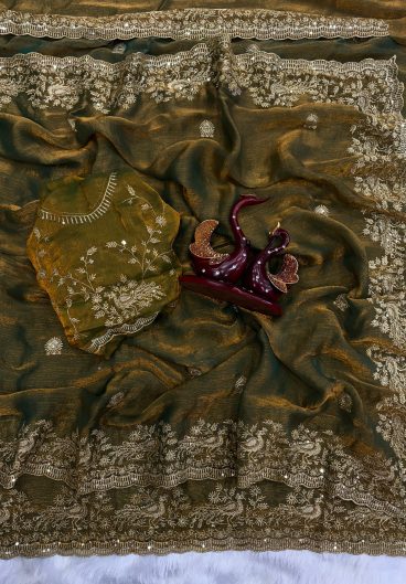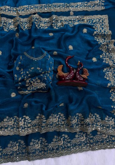 Frendy Chiffon with Beautiful Sequence and Zari embroidery work Saree