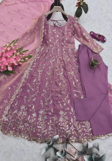 “Pure Chinon Silk With Embroidery 5mm Sequences Work Gown Pent & Dupatta” has been added to your cart.