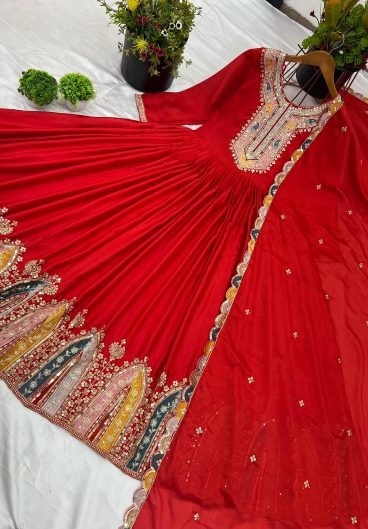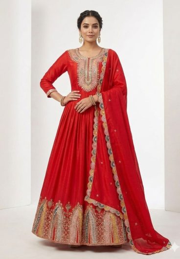 New Design Roman Simer Silk Gown & dupatta Reddy To Wear Look Design