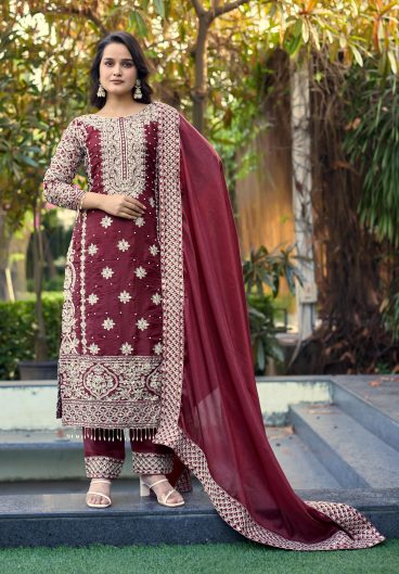 Pure Chinon Silk With Embroidery 5mm Sequences Work Gown Pent & Dupatta