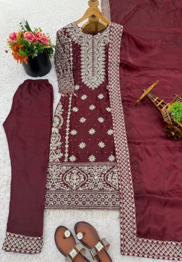 New Designer GMY SILK With Heavy Embroidery Coding 3mm Sequence Work Top Bottom And Dupatta Set