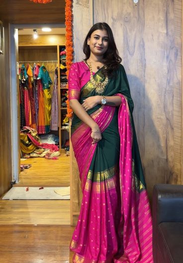 Beautiful Designer Saree on Heavy Tibby Silk Fabric with Thread & Sequence work