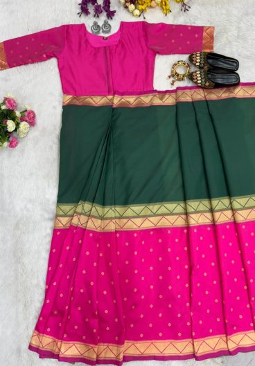 Beautiful Mysore Silk with Micro Cotton inner & Jequard work Zip Gown
