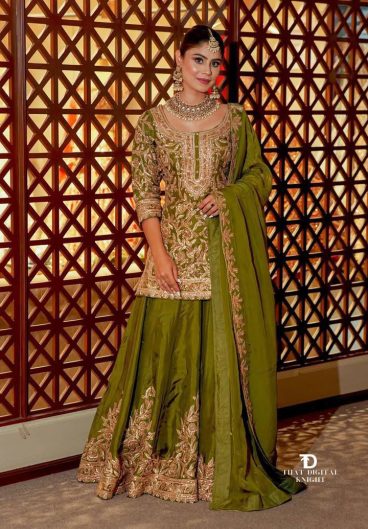 “New Pakistani Designer In Jimmy Choo Silk Top-Pent And Dupatta Set” has been added to your cart.