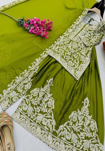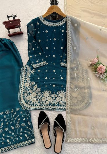 Heavy Chinon Silk with Codding Sequence Embroidery work Salwar Kameez
