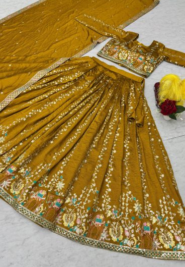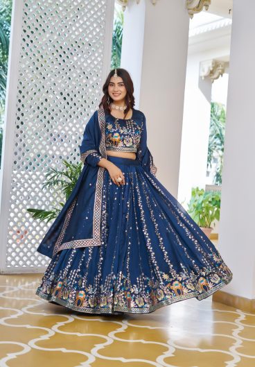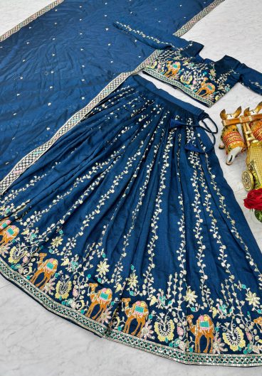 Beautiful Pure Vichitra with Embroidery Sequence Work with thread work Lehenga Choli