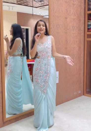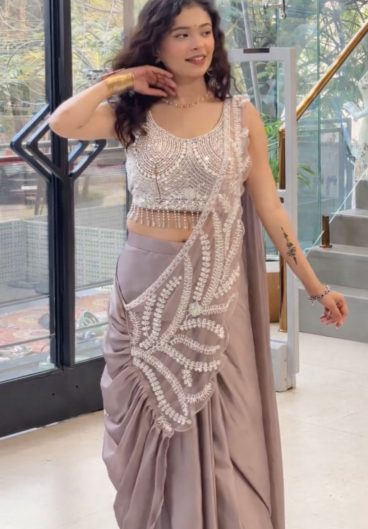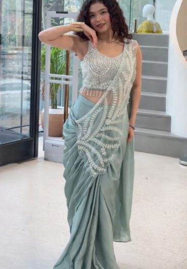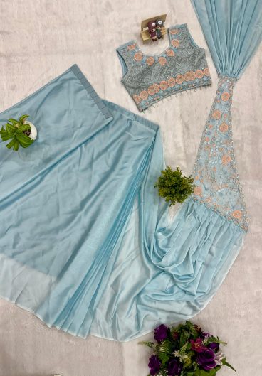New Super Trending Embroidery Sequence work ready to wear Saree with Embroidery Blouse