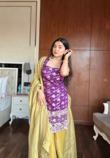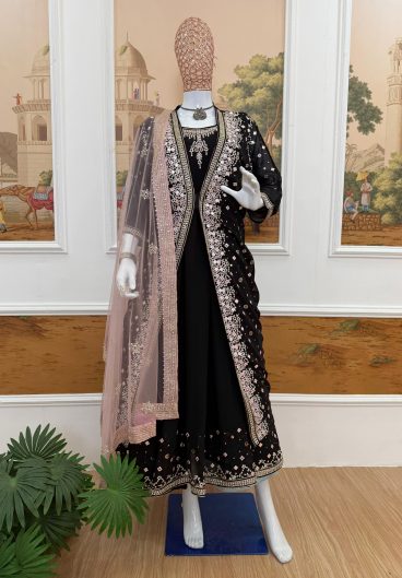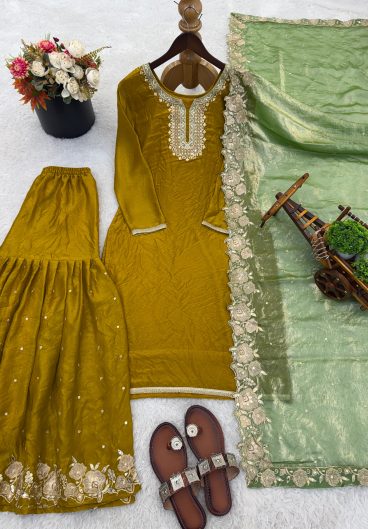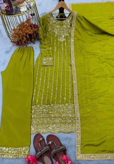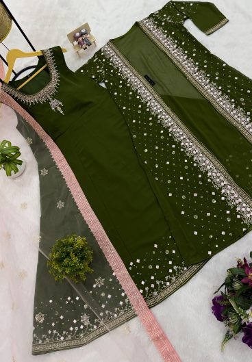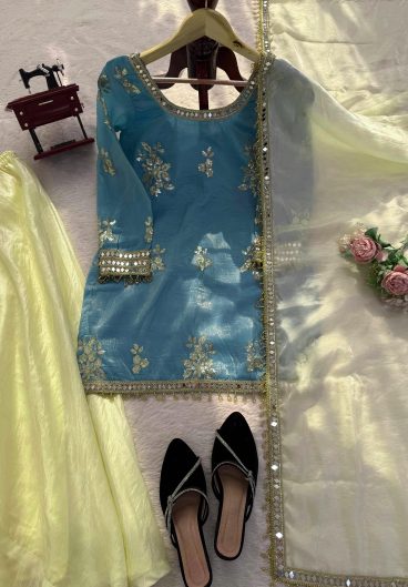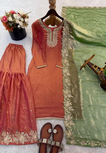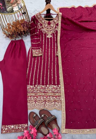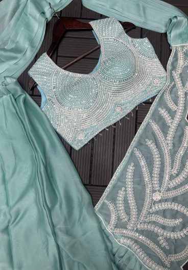 New Pure Fendy Silk With Heavy Embroidery Sequence Work Top-Bottom And Dupatta Set