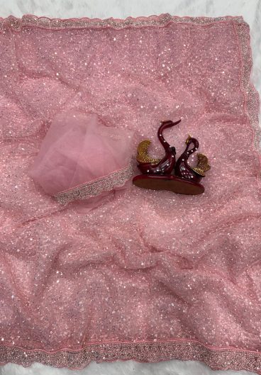 Soft net with Beautiful sequins and Beads Embroidery Work Saree