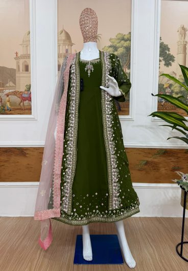 NEW SUPERHIT TRENDING FESTIVE COLLECTION GOWN KOTI & DUPATTA SET WITH EMBROIDERY WORK & CRYSTAL STONE WORK