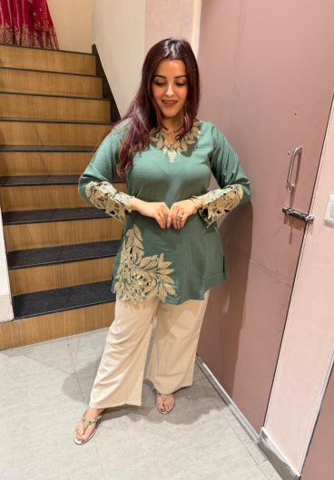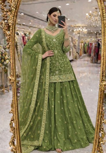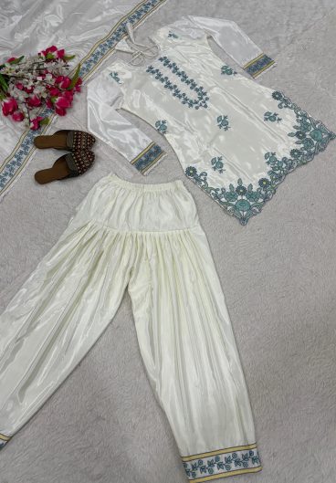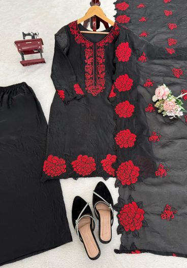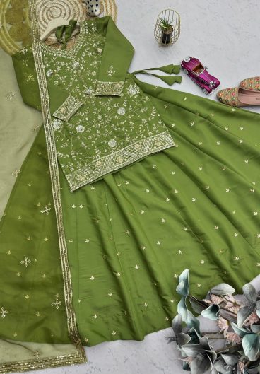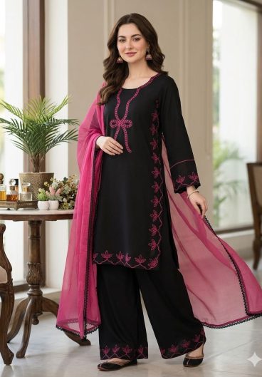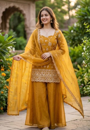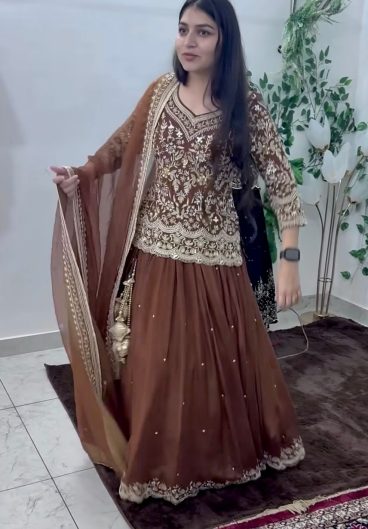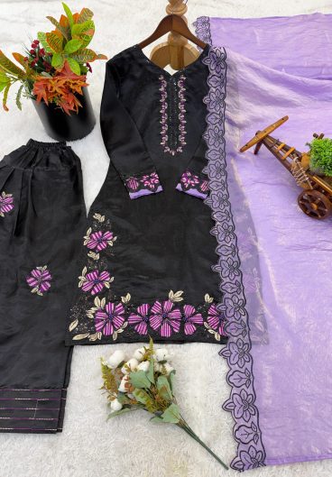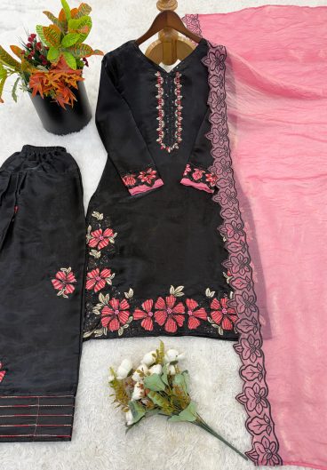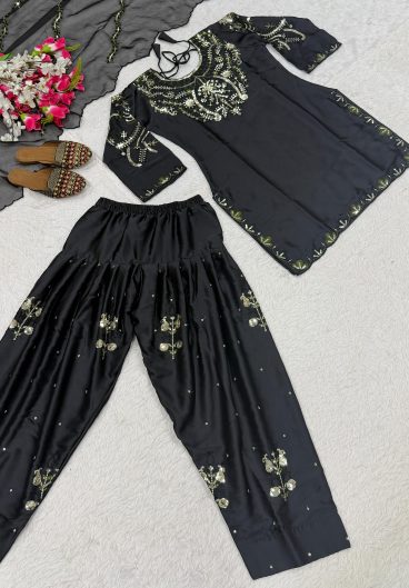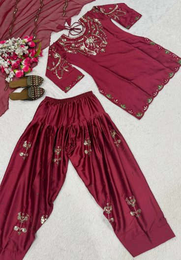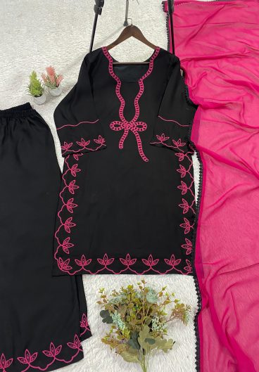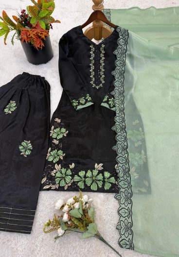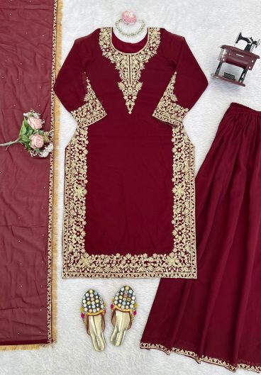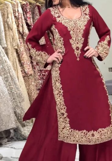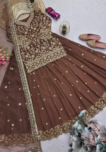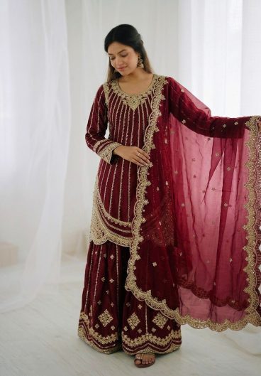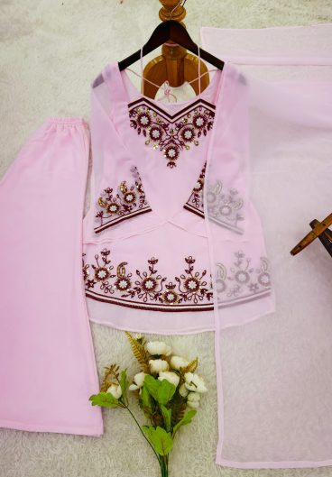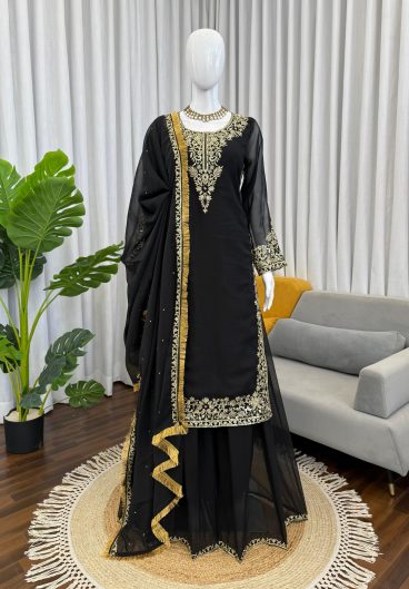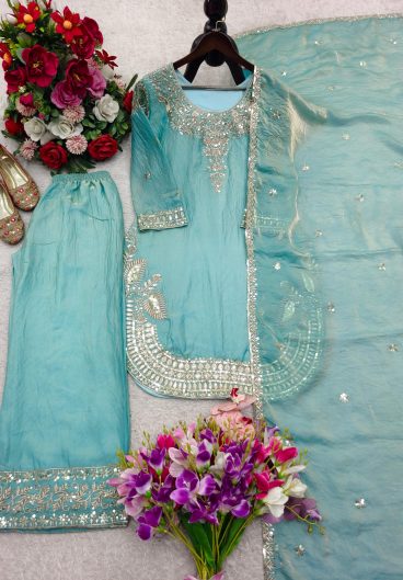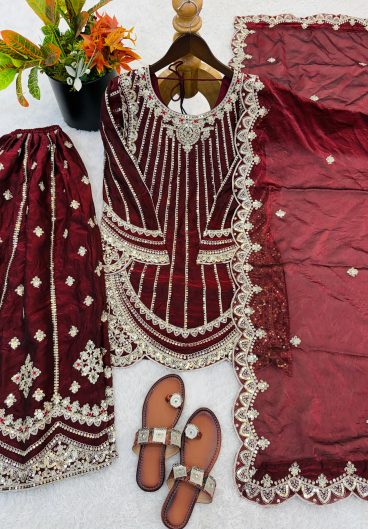 New Premium Quality With Embroidery Sequence Worked Top-Plazzo And Dupatta Set