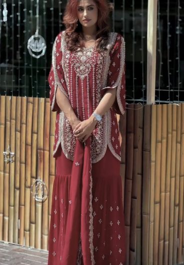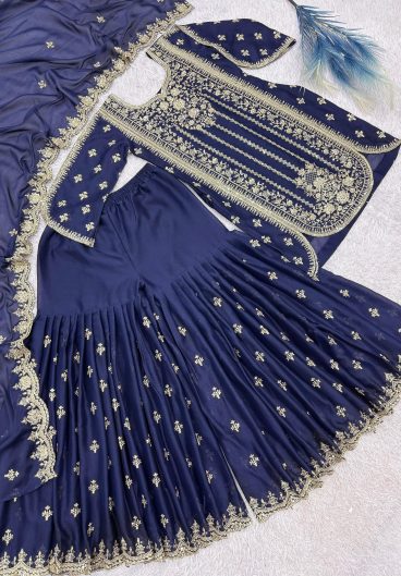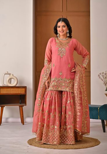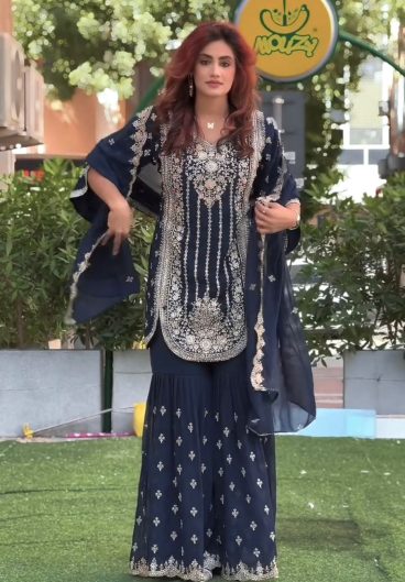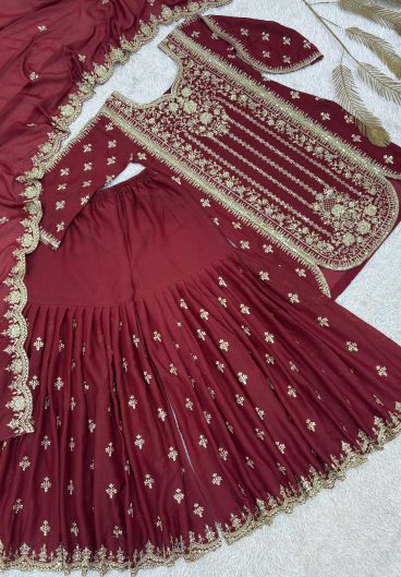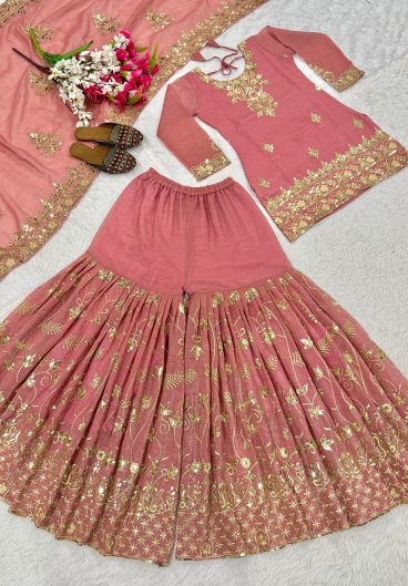 New Premium Quality With Embroidery Sequence Worked Top-Sharara And Dupatta Set Fully Stitched