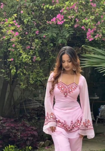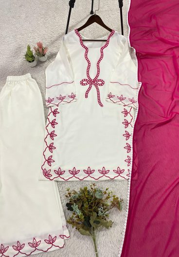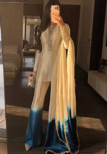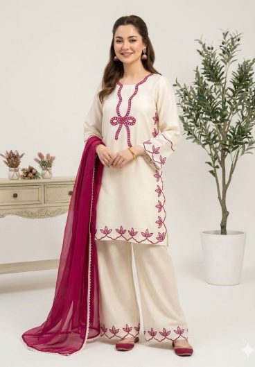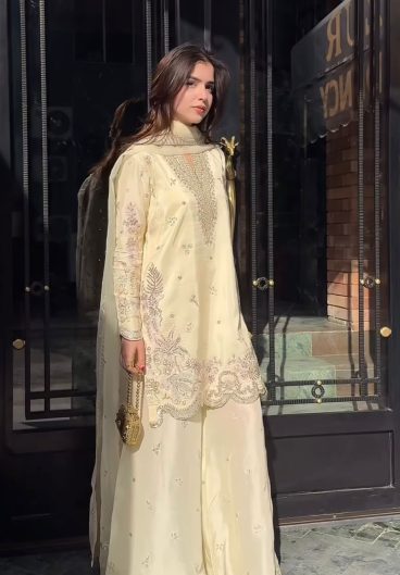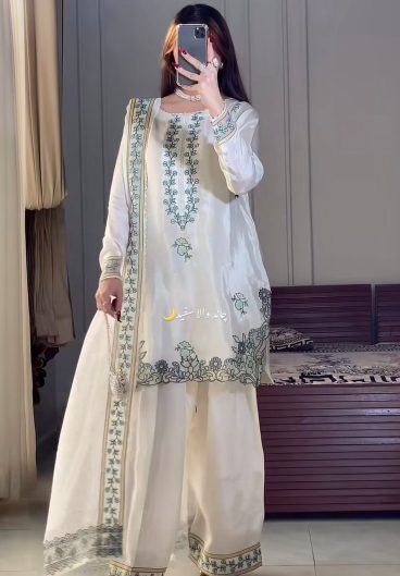 HANIA AMIR INSPIRED PAKISTANI SUIT WITH EMBROIDERED WORKED TOP PLAZZO & DUPATTA