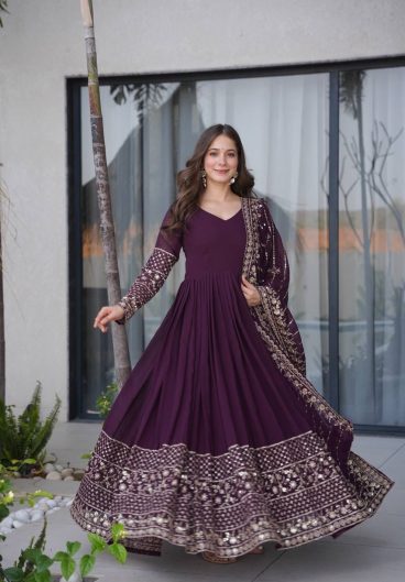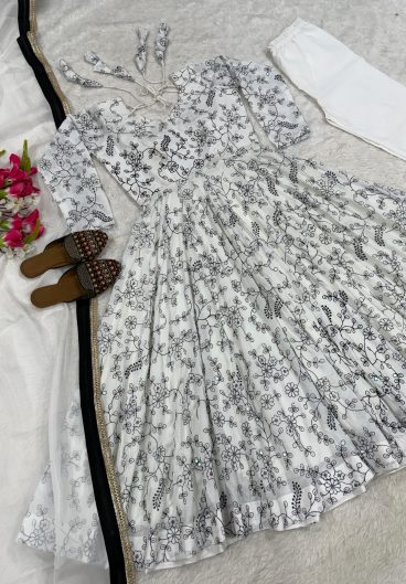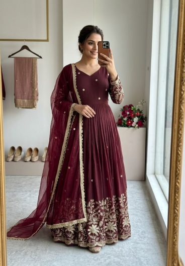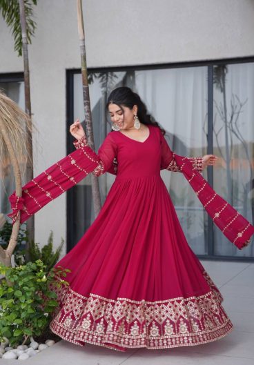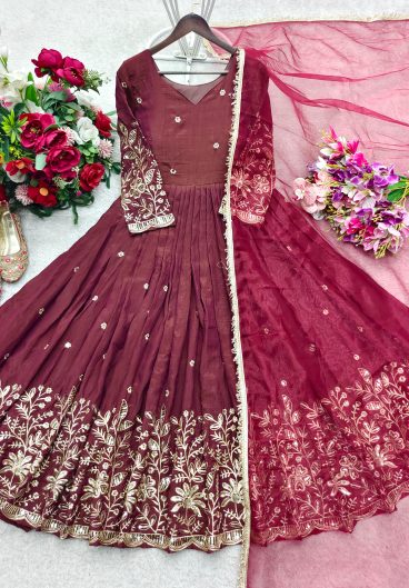 Designer Embroidered Fox Georgette Sequence Work Anarkali Gown Dupatta
