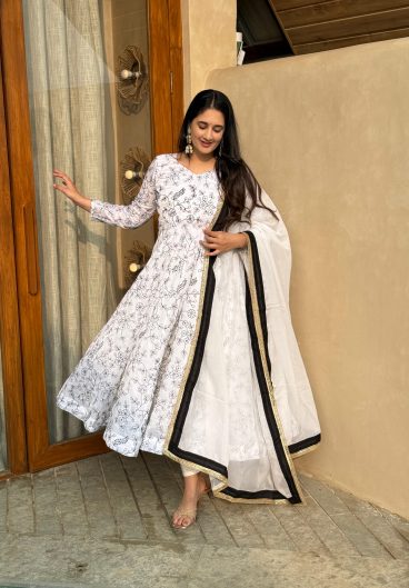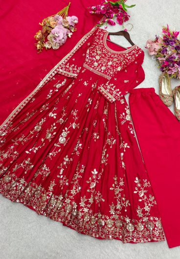 Pure Cinon Silk With Heavy Embroidery Coding Dori and 3-5mm Sequence Work Anarkali Salwar Kameez