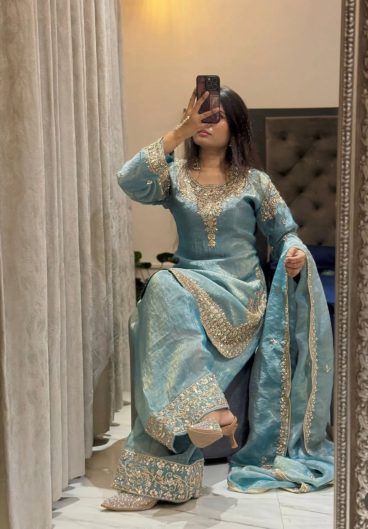 NEW Designer Party Wear Look Heavy Shimmer Silk with Heavy Embroidery Sequins Work Salwar Kameez