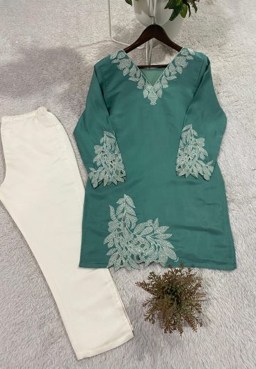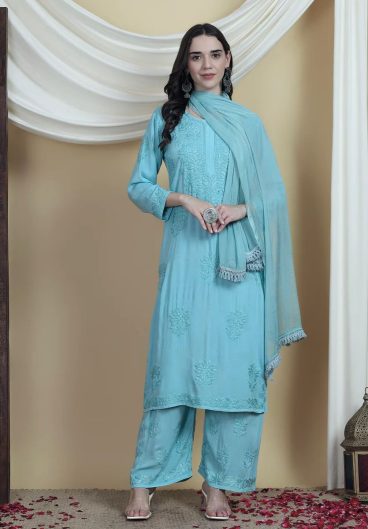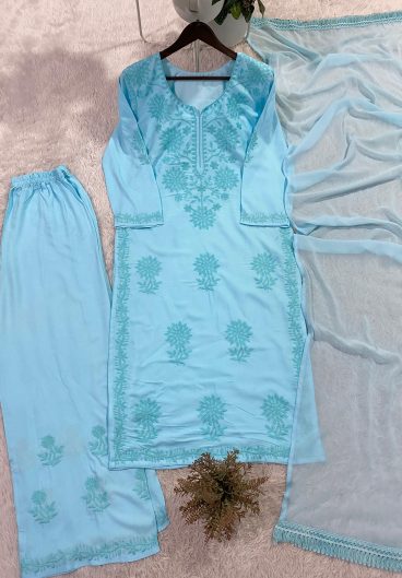 REYON WITH EMBROIDERY ON FRONT AND SLEEVES DESIGNER AND COMFORTABLE CHIKANKARI SUIT