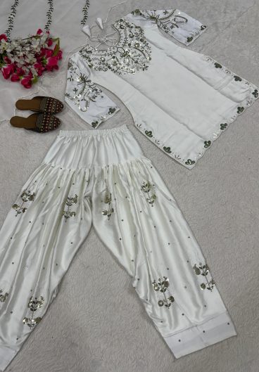 New Designer Party Wear Look Heavy Japan Satin Material With Embroidery sequence Work Top With Farshi Salwar