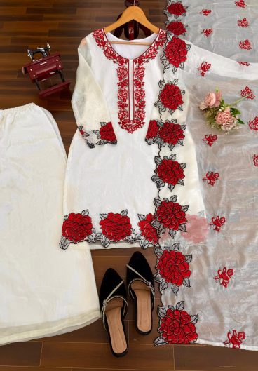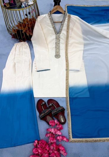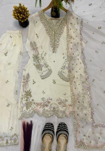New Designer Heavy Faux Georgette Silk Top-Bottom And Dupatta Set