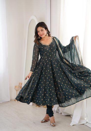 Heavy Crunchy Silk with Jacquard Butti and Lace Work Anarkali Salwar Kameez