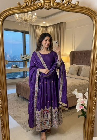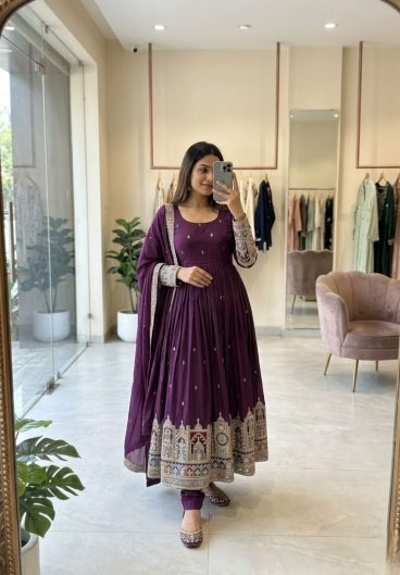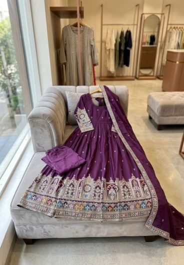 New Designer Heavy NC Vichitra Silk Material With 5mm Sequence And Embroidery Work Anarkali Suit