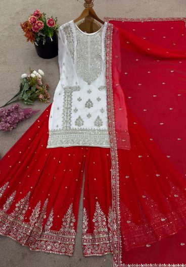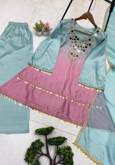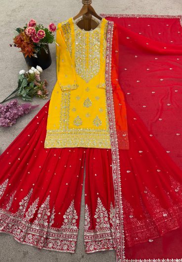 EXCLUSIVE 3 PIECE PLAZZO PAIR WITH DUPATTA IN SEQUENCE EMBROIDERY WORK