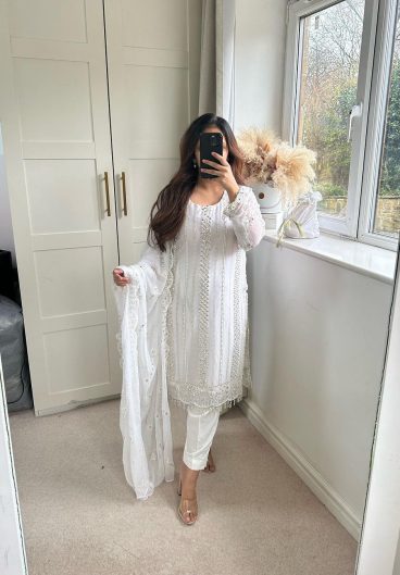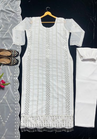 New Designer White Long Top Pant and Dupatta In Fancy Style