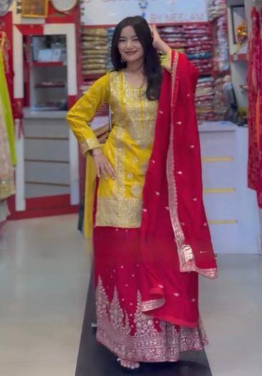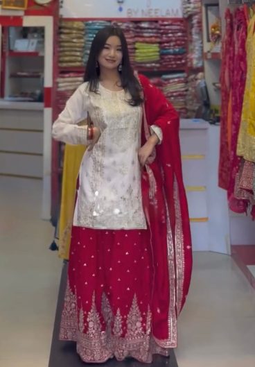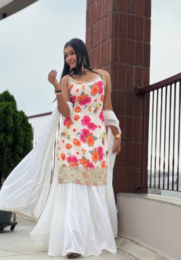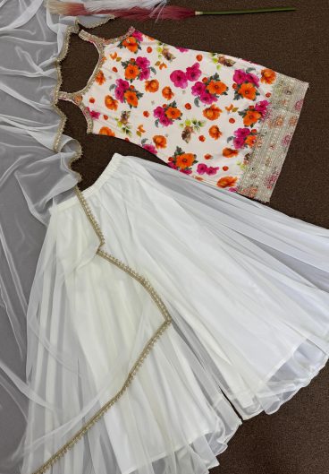 NEW READY TO WEAR EMBROIDERY WORK AND DIGITAL PRINT TOP DHOTI WITH DUPATTA