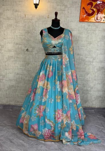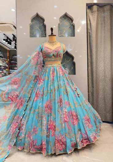 4 meter flared Fox Georgette Sequins Embroidered Work Lehenga Choli