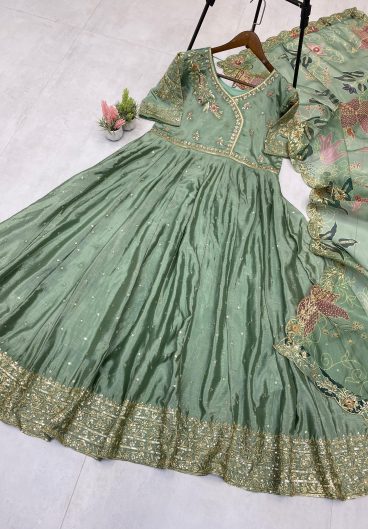 Heavy Chinon Silk With Heavy Embroidery Codding Sequence Work With Diamond Handwork Top-Bottom And Dupatta Set