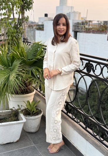 Crafted from 100% pure cotton elegant two-piece cordset is designed for comfort and sophistication